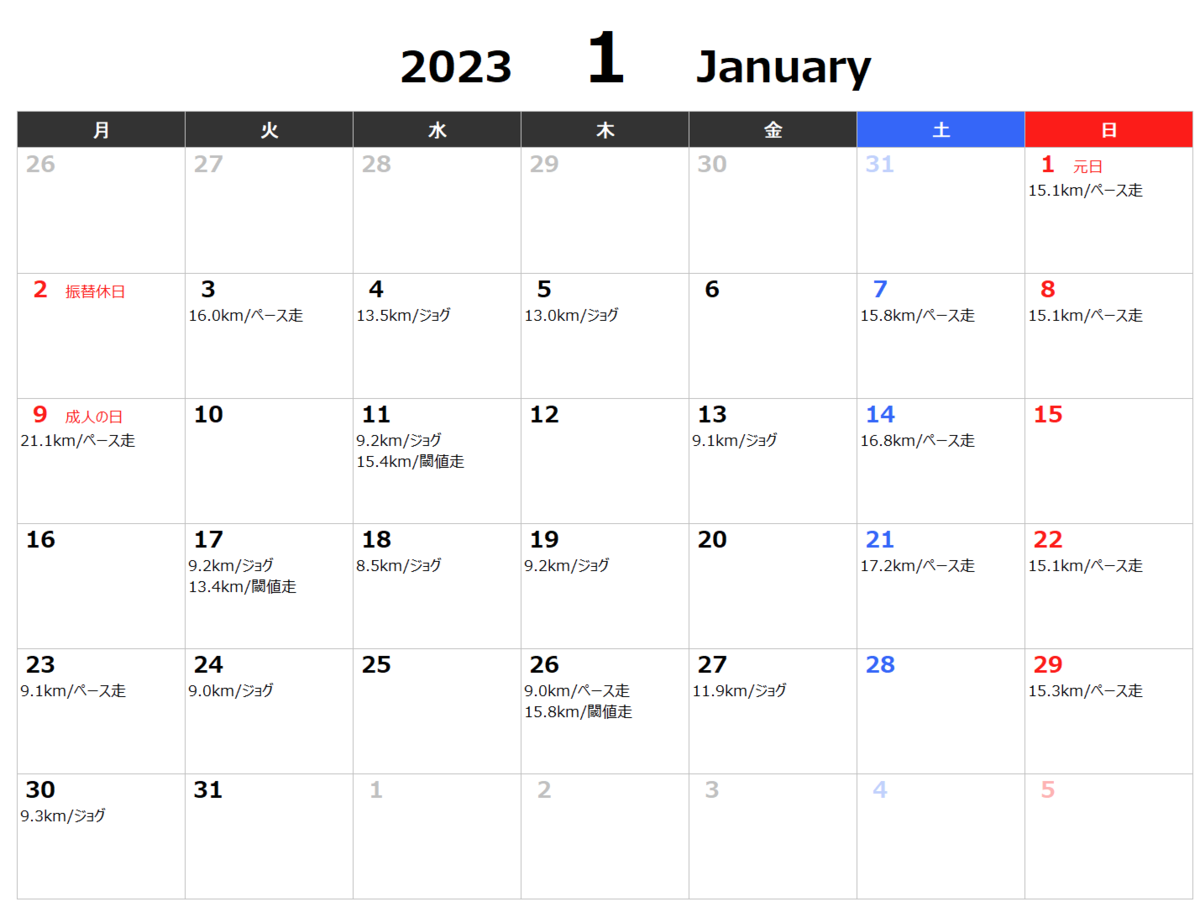 さて。1月はまだ明日も残っていますが、明日は走れないので今月走れるのは今日が最終日でした。というわけで今月走った距離を計算してみました。