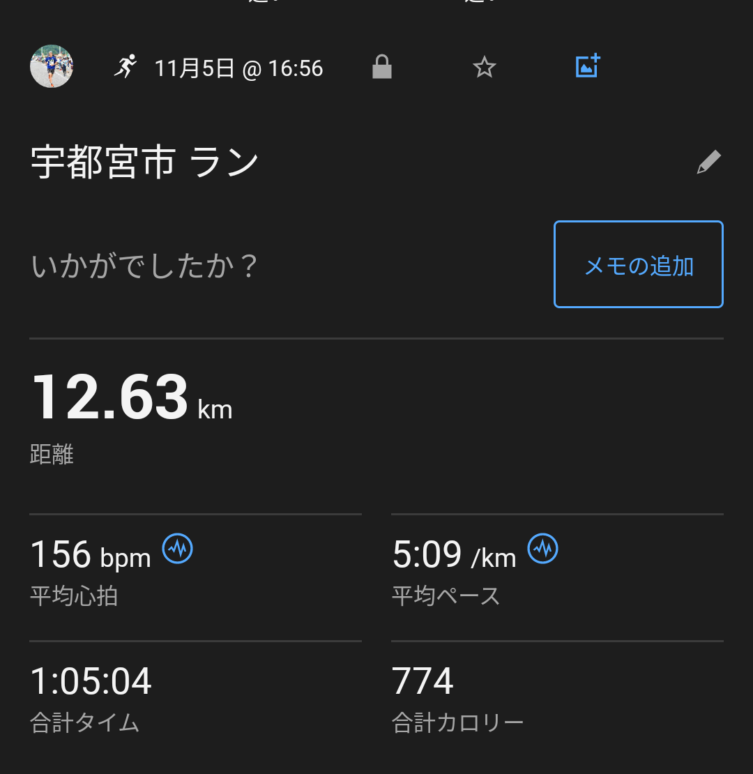今日は街中を経由してちょっといつもと違うコースを走ってみました。最初は大通りを走っていて気持ちよかったのですが、道路が狭くなってさらに日が落ちてしまったら真っ暗でめちゃくちゃ走りにくくて散々でした。あと1時間早く家を出ていれば...。
