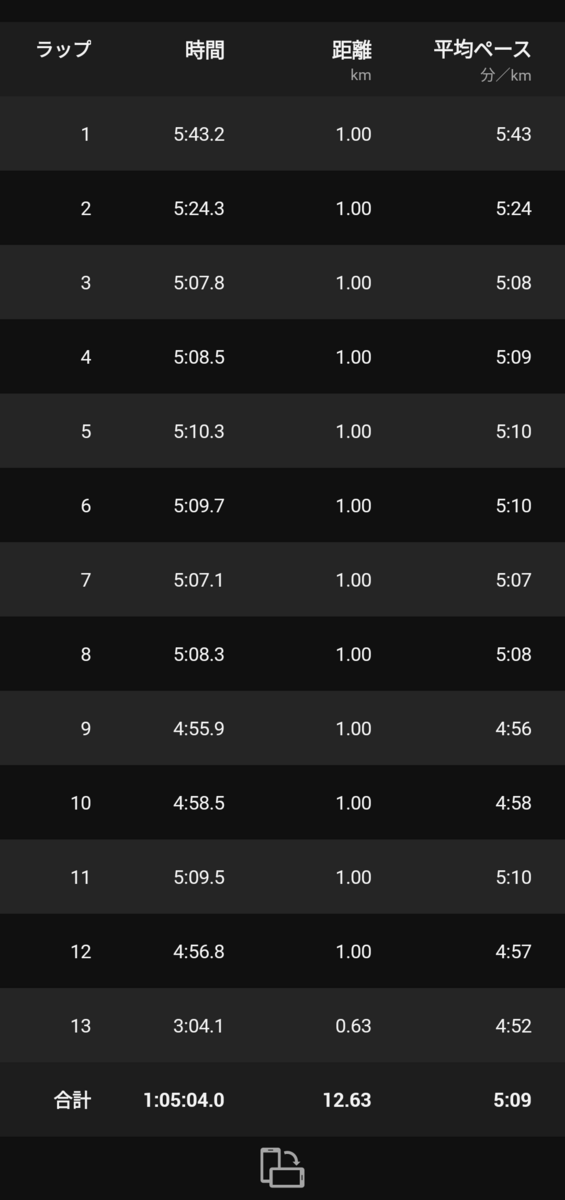 走りやすいところと走りにくいところでペースがぜんぜん違っていてしんどい1時間でした。